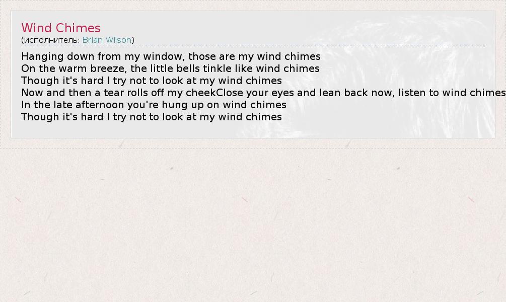 А как ты думаешь, о чем песня "Wind Chimes" ?