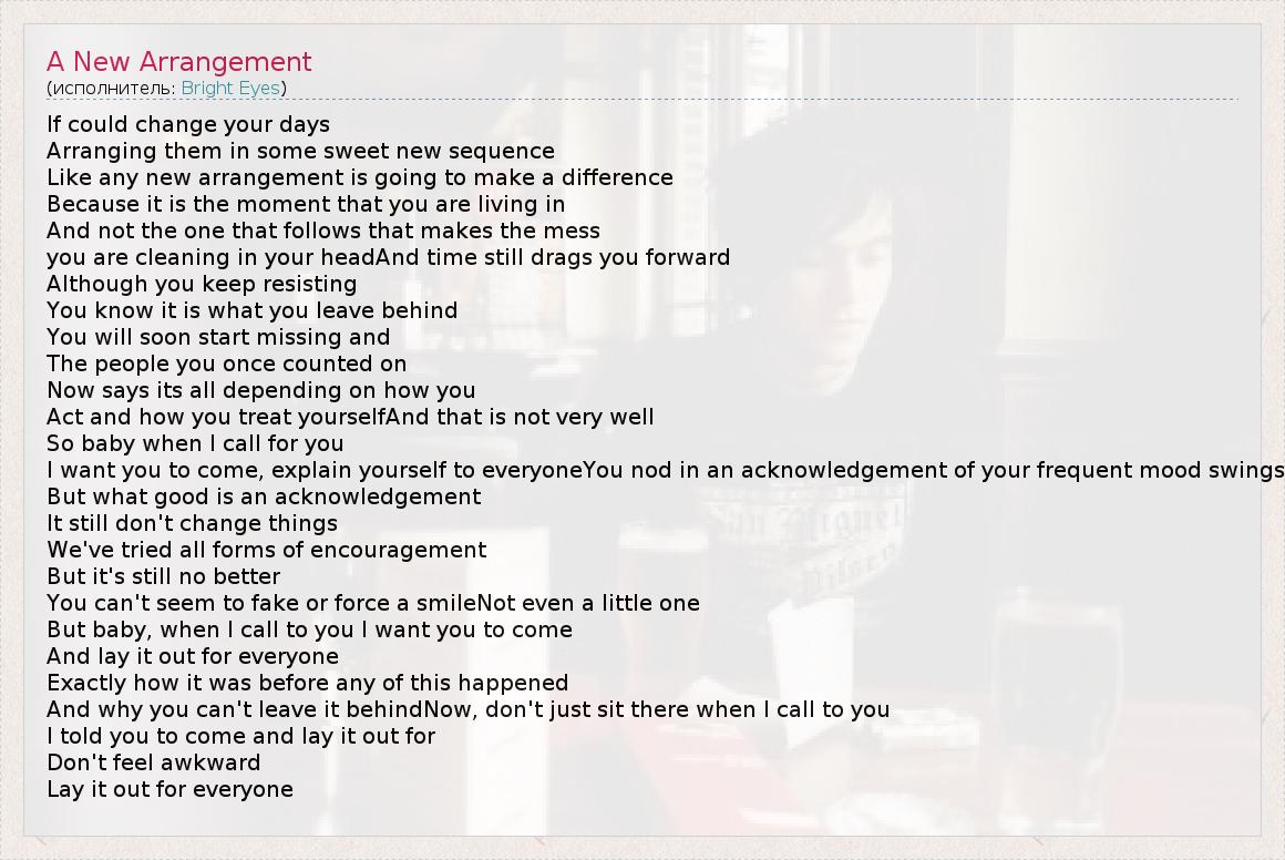 А как ты думаешь, о чем песня "A New Arrangement" ?