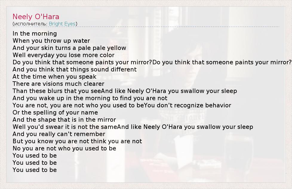 А как ты думаешь, о чем песня "Neely O'Hara" ?