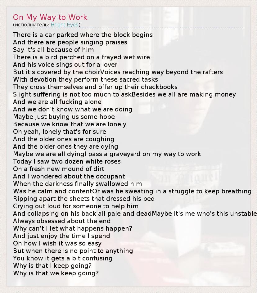 А как ты думаешь, о чем песня "On My Way to Work" ?