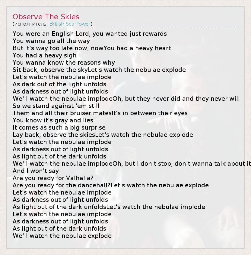 А как ты думаешь, о чем песня "Observe The Skies" ?