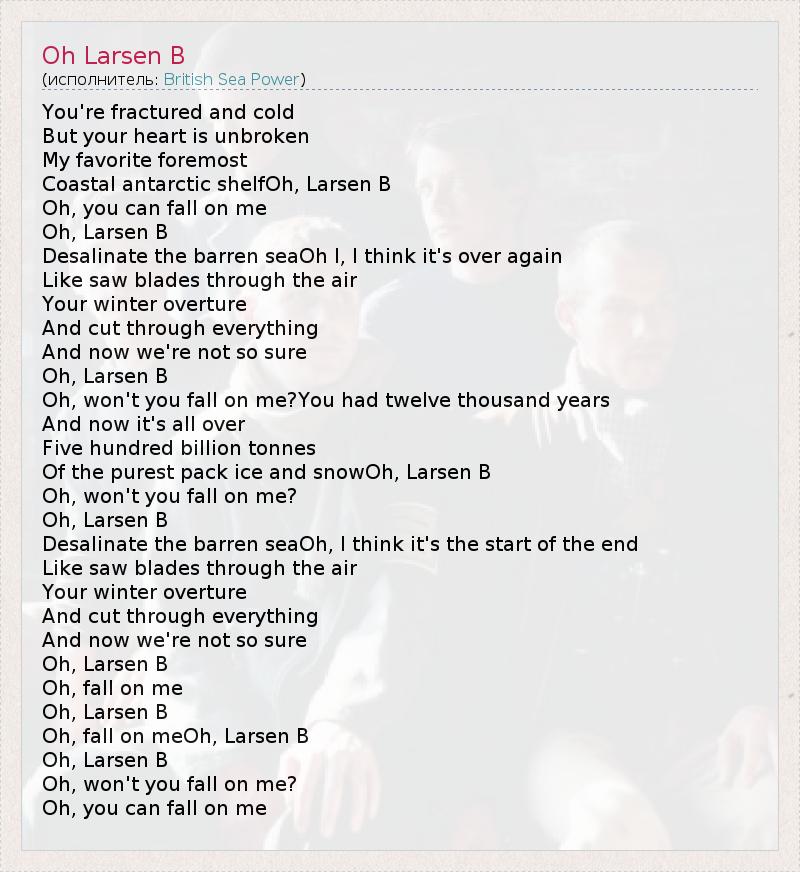 А как ты думаешь, о чем песня "Oh Larsen B" ?