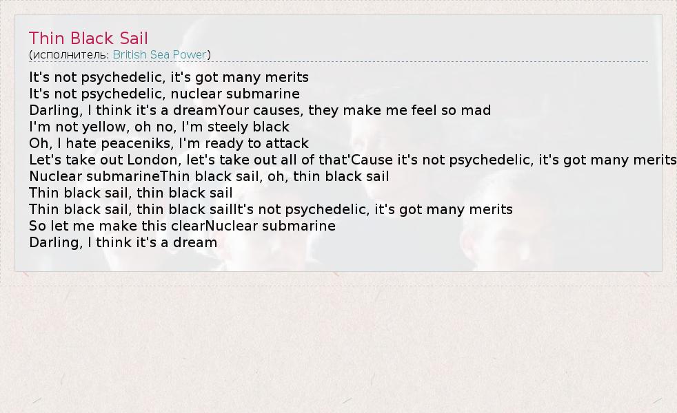 А как ты думаешь, о чем песня "Thin Black Sail" ?