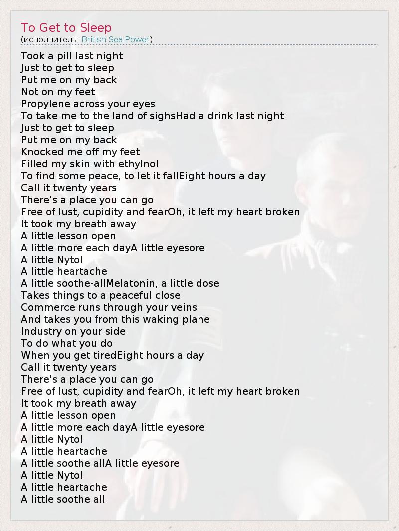 А как ты думаешь, о чем песня "To Get to Sleep" ?