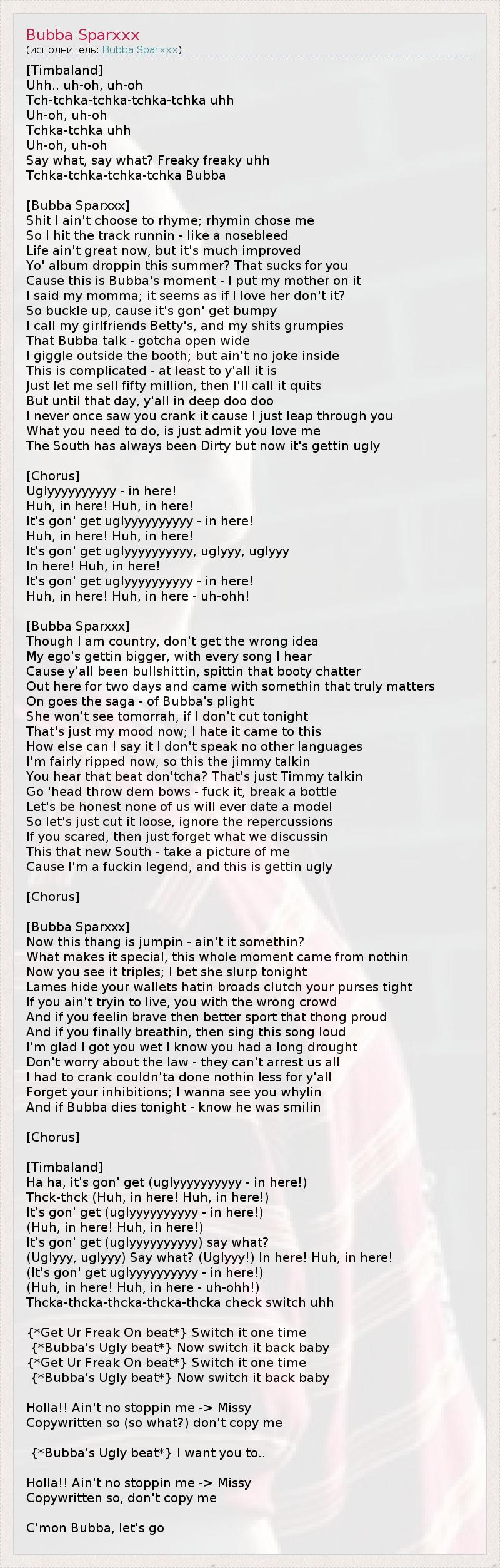 А как ты думаешь, о чем песня "Bubba Sparxxx" ?