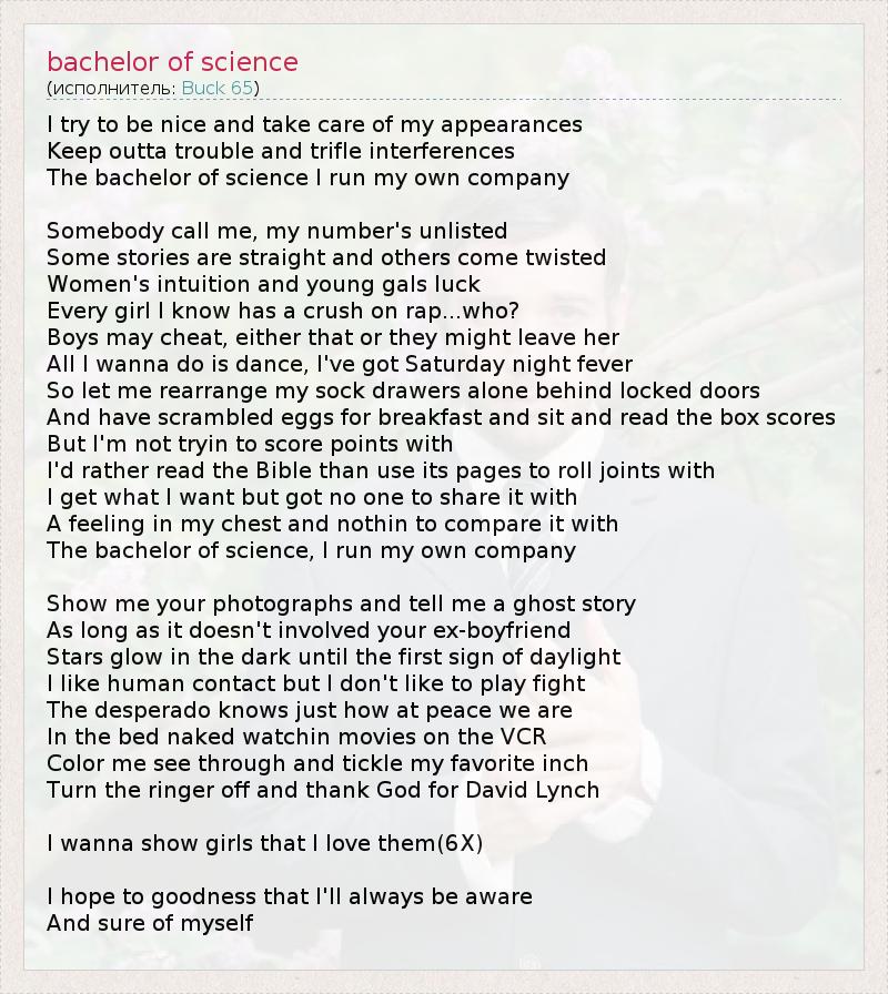 А как ты думаешь, о чем песня "bachelor of science" ?