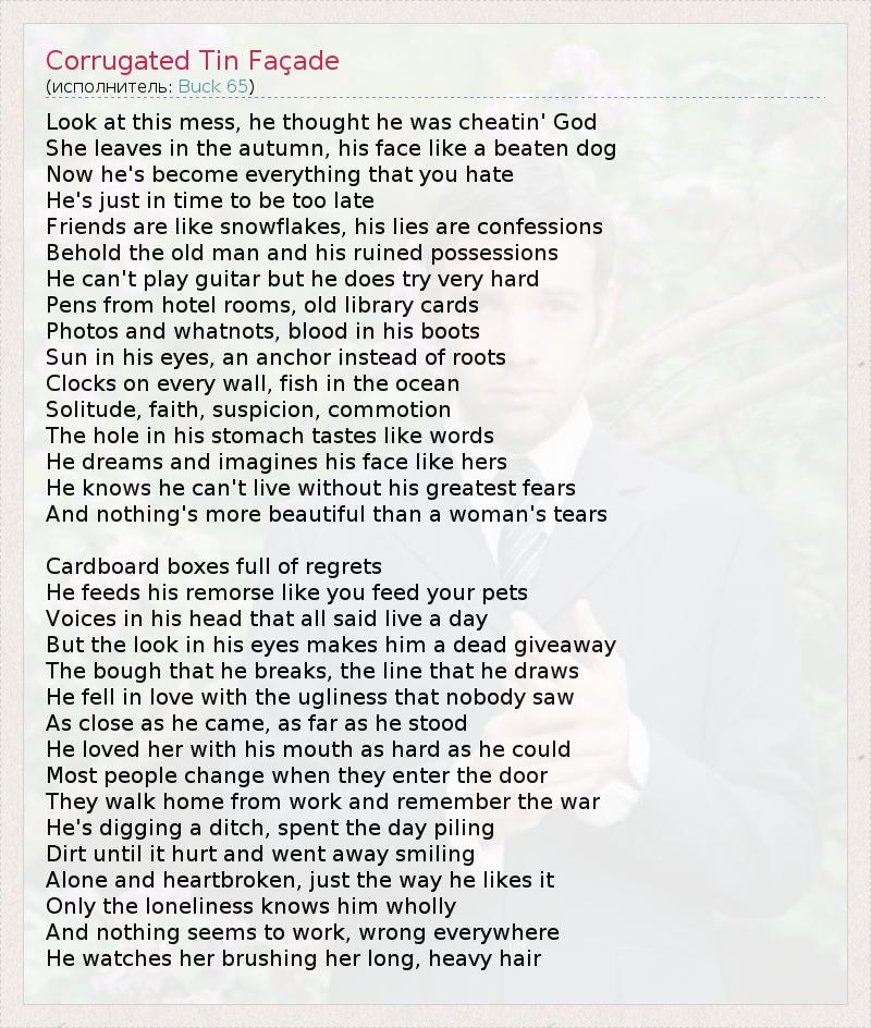 А как ты думаешь, о чем песня "Corrugated Tin Façade" ?