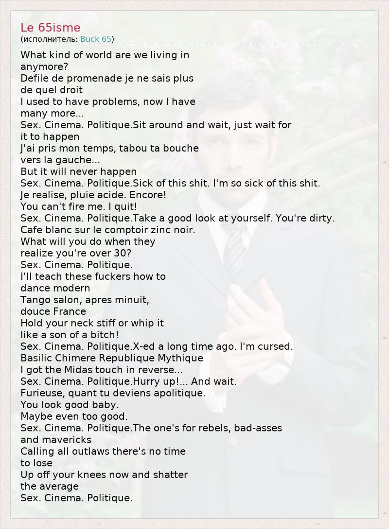 А как ты думаешь, о чем песня "Le 65isme" ?