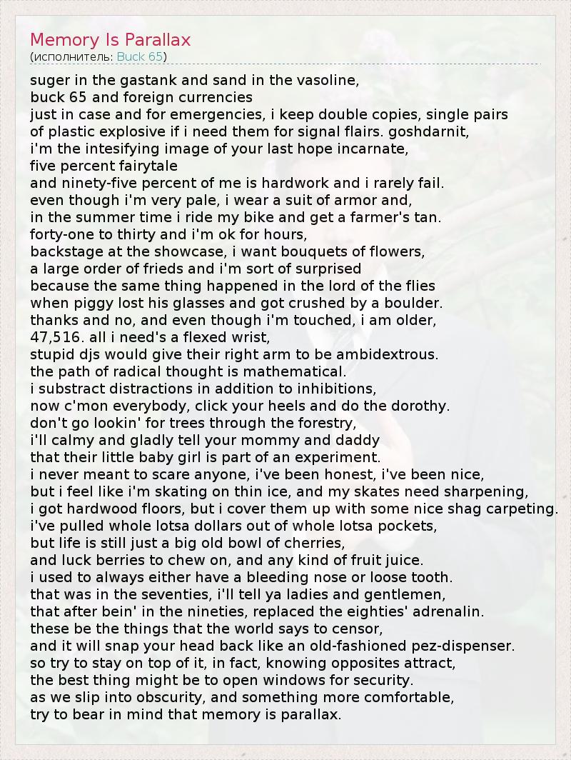 А как ты думаешь, о чем песня "Memory Is Parallax" ?