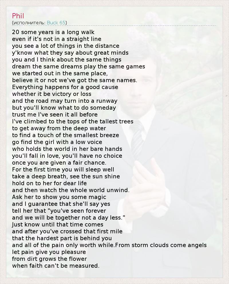 Это интересно:Richard Terfry (родился 4 марта 1972-го года), более известный под именем Buck 65 - легенда канадского хип-хопа. Его роль в развитии современной хип-хоп музыки сложно переоценить. Он стал одним из создетелей современного альтернативного и экспериментального хип-хопа. К тому же его эксперименты уходят далеко за пределы хип-хопа. Он экспериментирует с блюзом, кантри, роком, фолком и авангардом.Детство... продолжение