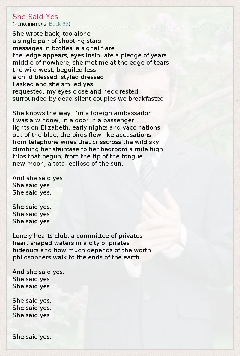 А как ты думаешь, о чем песня "She Said Yes" ?