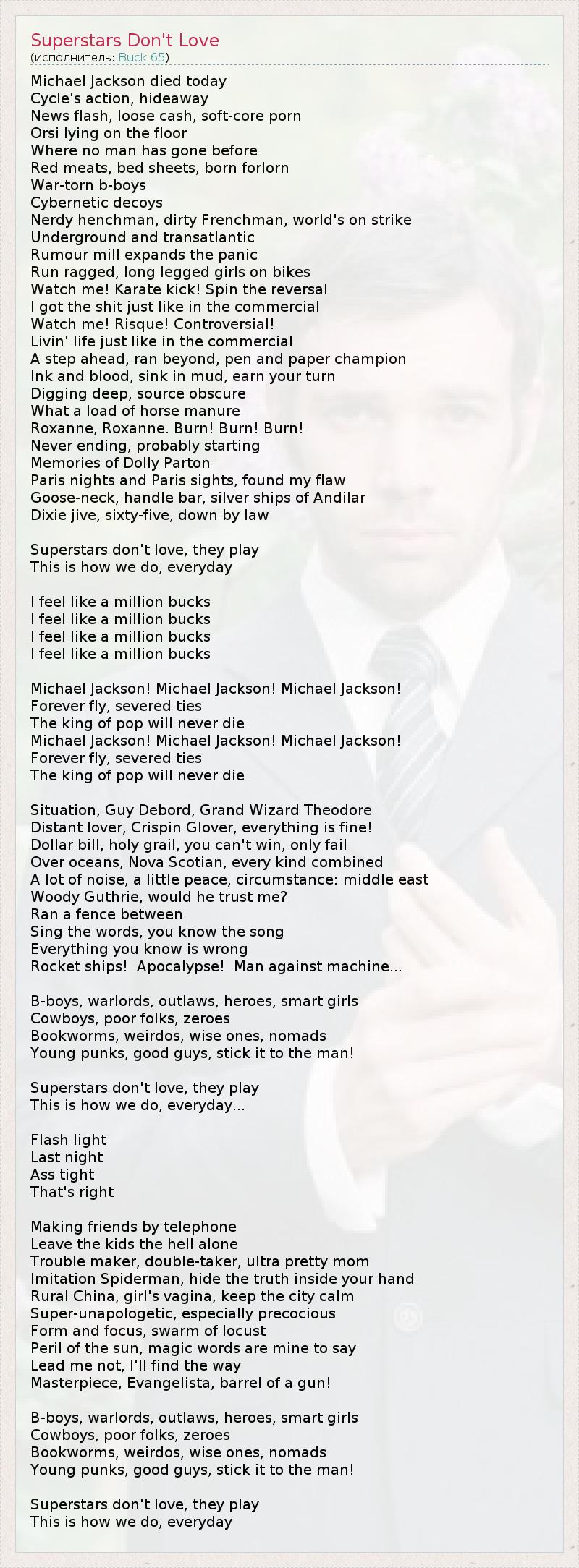 А как ты думаешь, о чем песня "Superstars Don't Love" ?