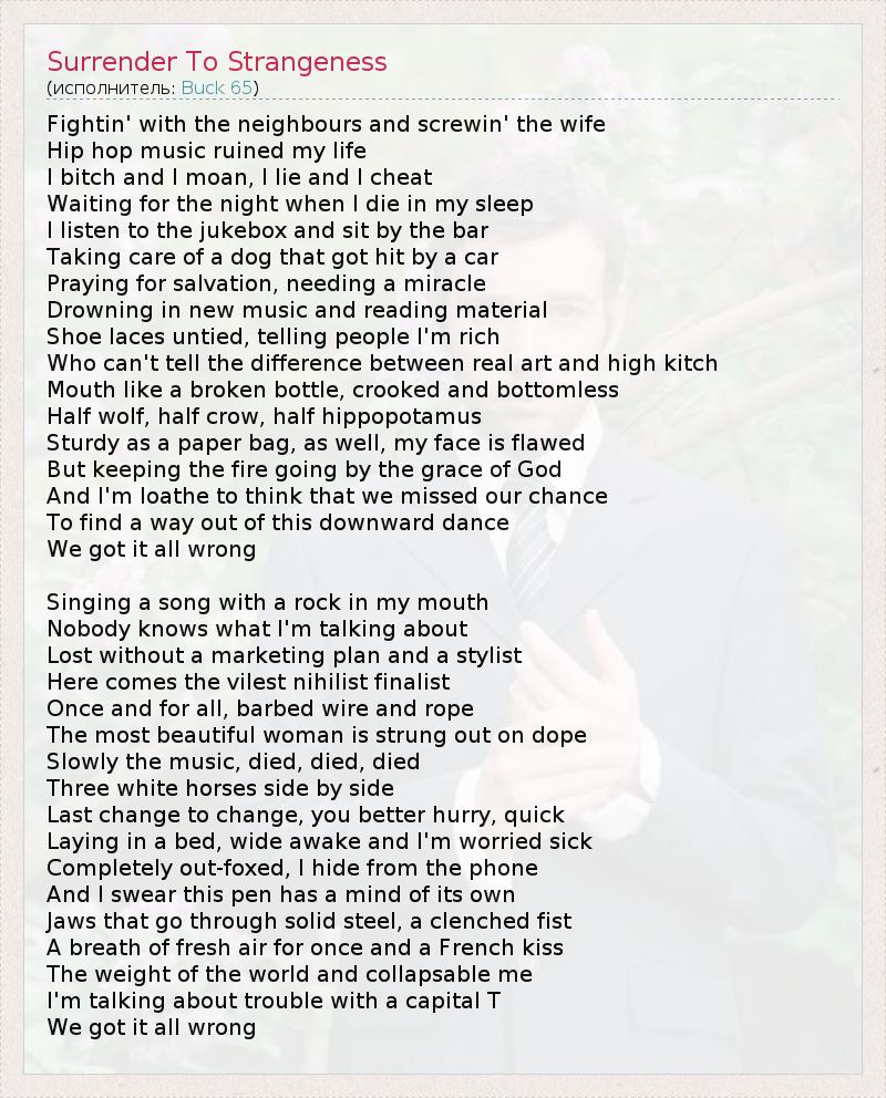 ГлавнаяИсполнителиBuck 65Surrender To Strangeness