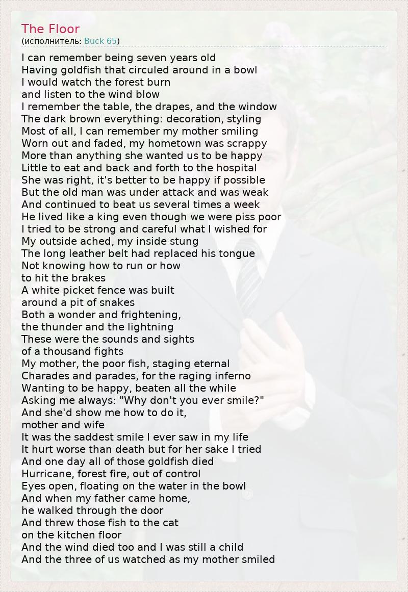 Это интересно:Richard Terfry (родился 4 марта 1972-го года), более известный под именем Buck 65 - легенда канадского хип-хопа. Его роль в развитии современной хип-хоп музыки сложно переоценить. Он стал одним из создетелей современного альтернативного и экспериментального хип-хопа. К тому же его эксперименты уходят далеко за пределы хип-хопа. Он экспериментирует с блюзом, кантри, роком, фолком и авангардом.Детство... продолжение