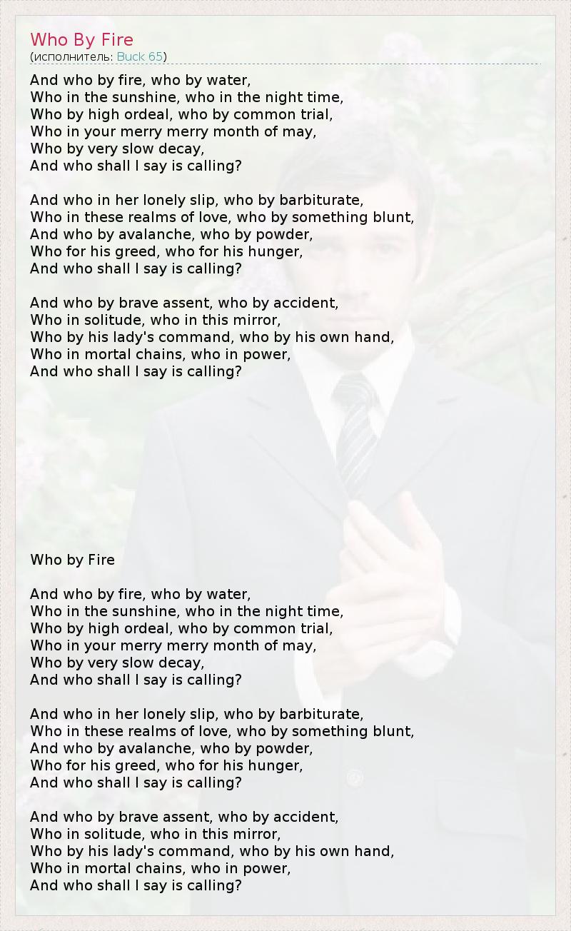 А как ты думаешь, о чем песня "Who By Fire" ?