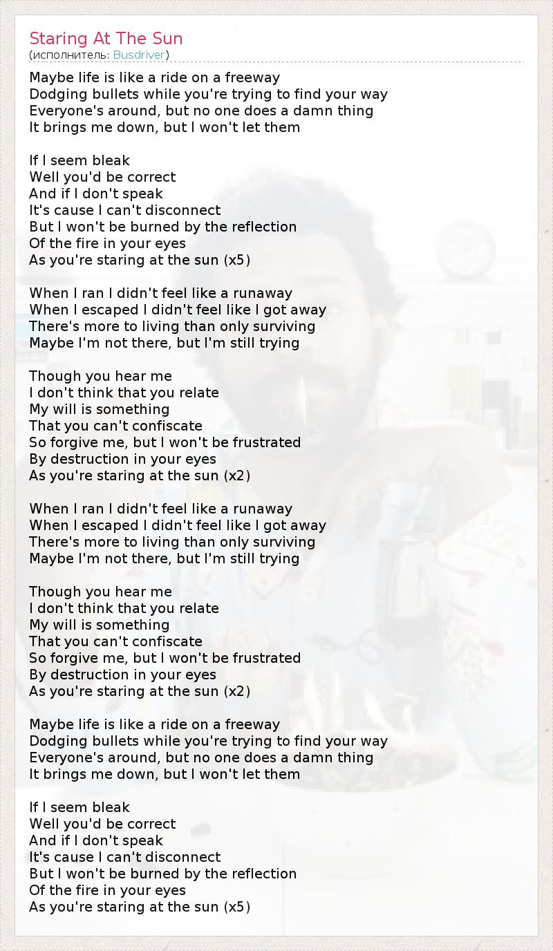А как ты думаешь, о чем песня "Staring At The Sun" ?