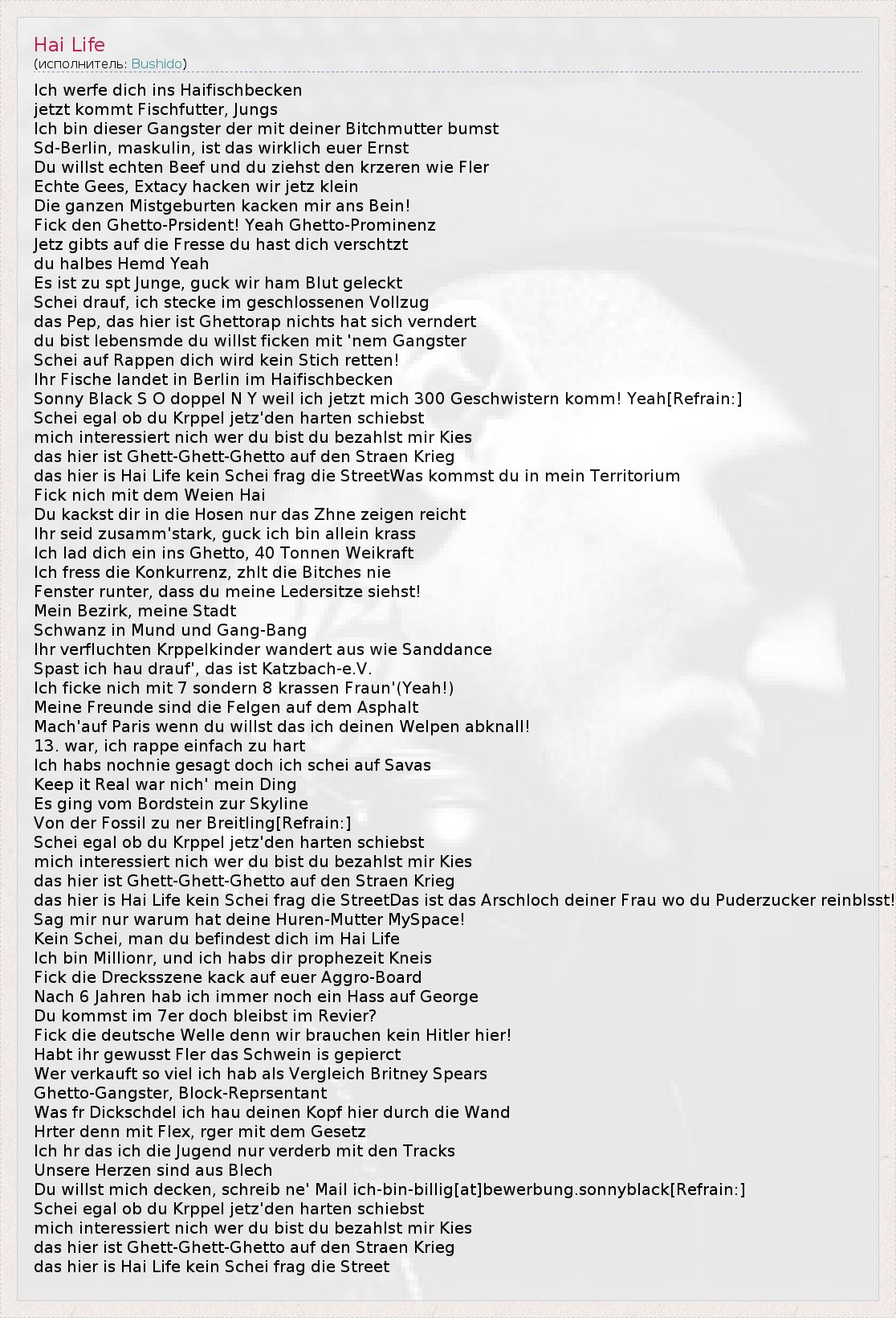 das hier is Hai Life kein Schei frag die StreetWas kommst du in mein Territorium
