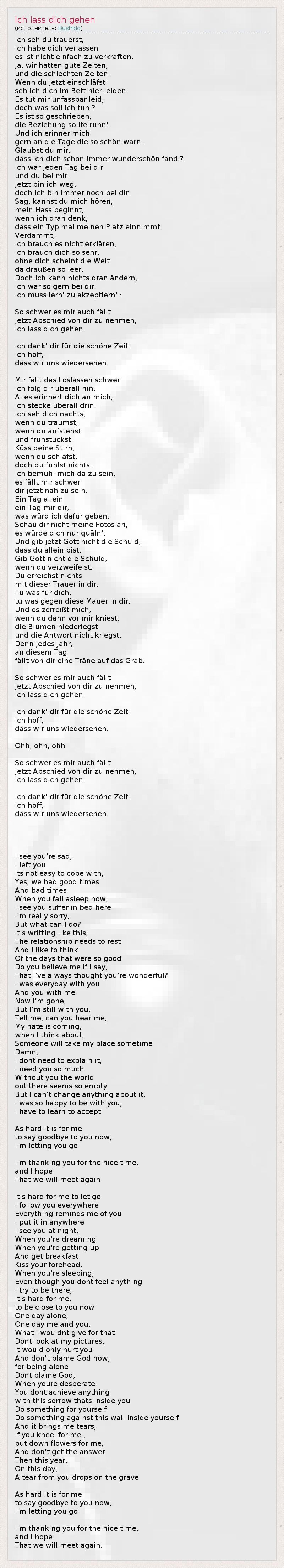 А как ты думаешь, о чем песня "Ich lass dich gehen" ?