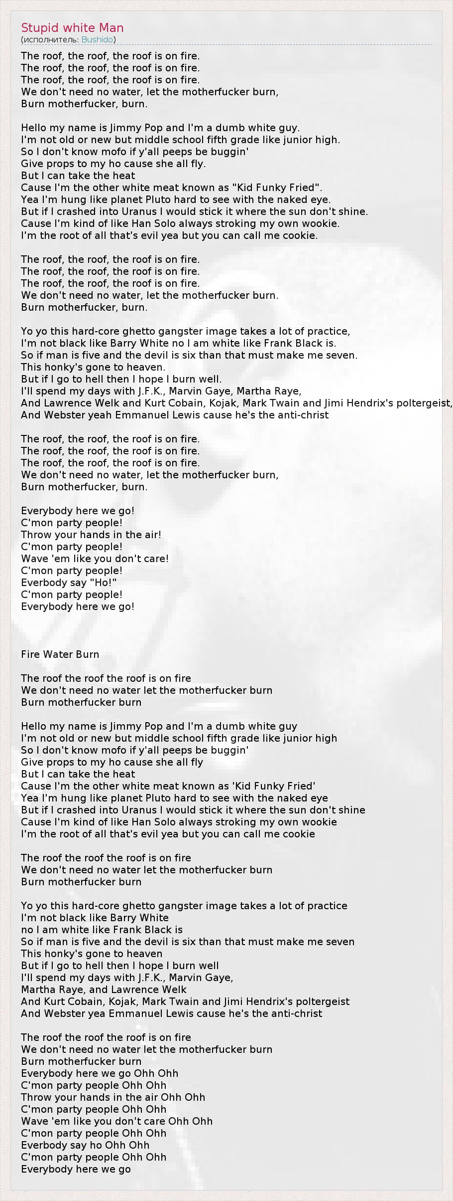 А как ты думаешь, о чем песня "Stupid white Man" ?