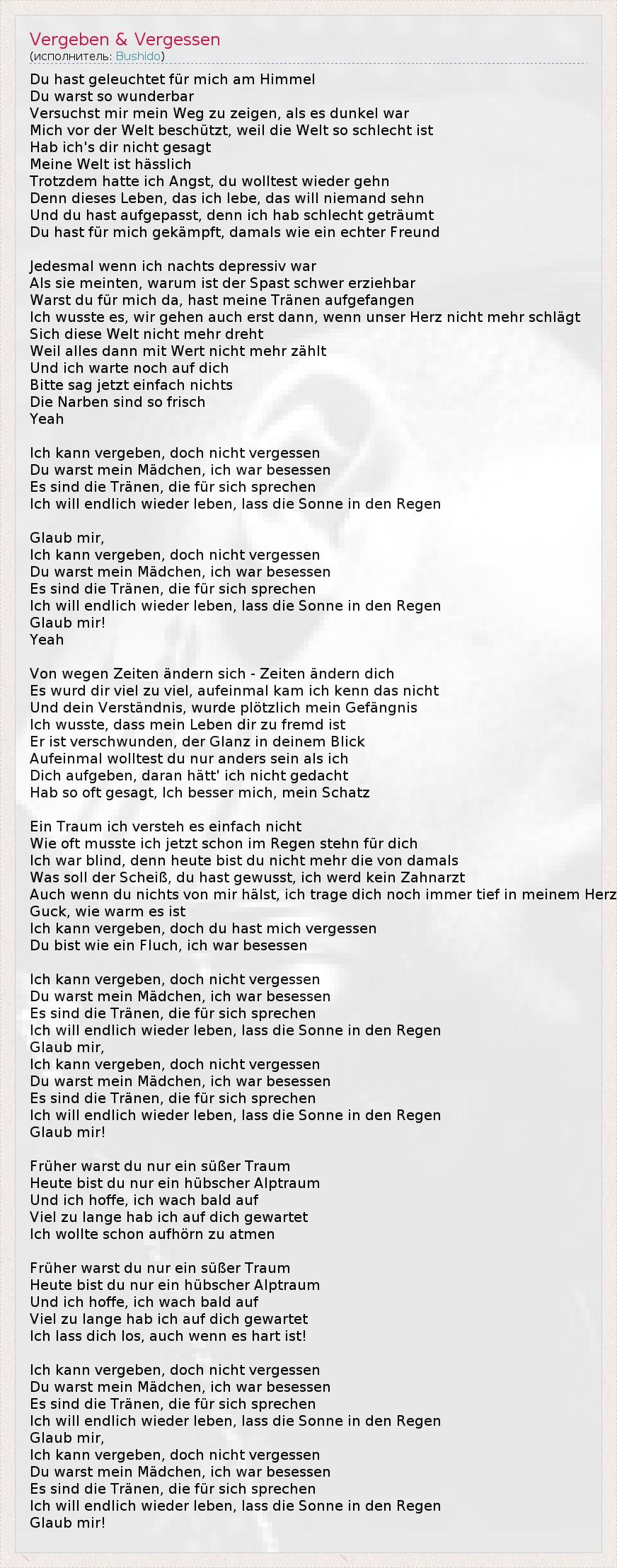 А как ты думаешь, о чем песня "Vergeben & Vergessen" ?
