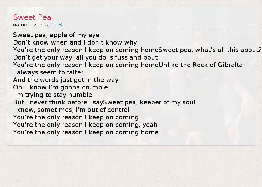 А как ты думаешь, о чем песня "Sweet Pea" ?