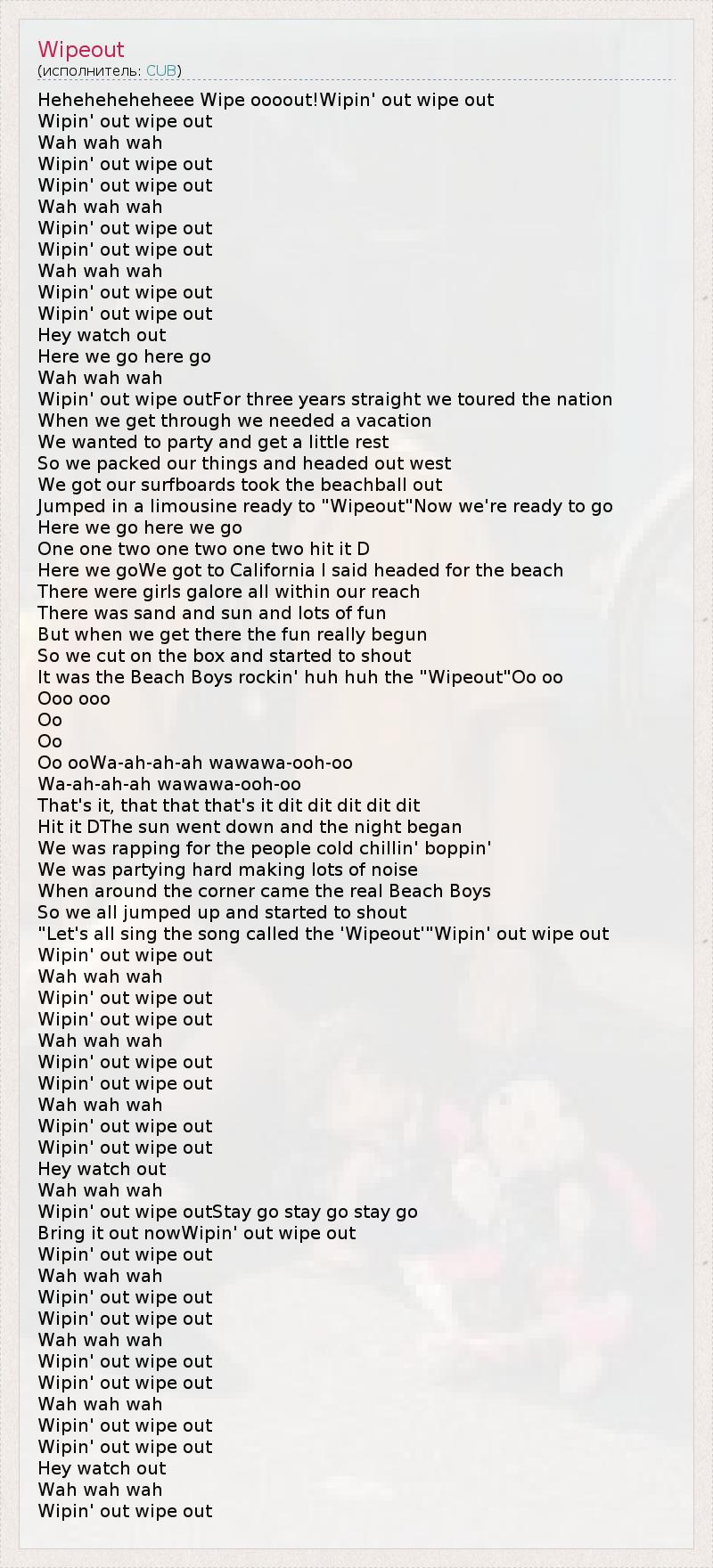 "Let's all sing the song called the 'Wipeout'"Wipin' out wipe out