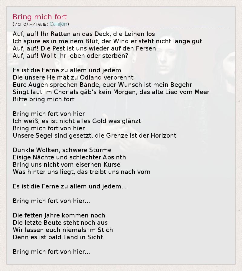 А как ты думаешь, о чем песня "Bring mich fort" ?