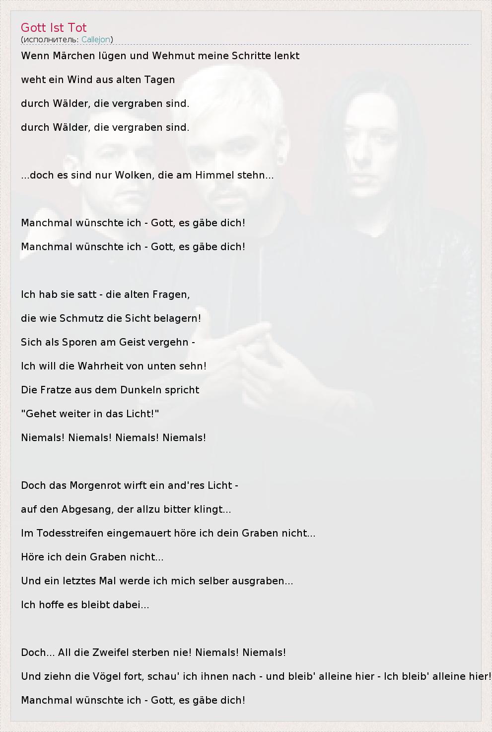 А как ты думаешь, о чем песня "Gott Ist Tot" ?