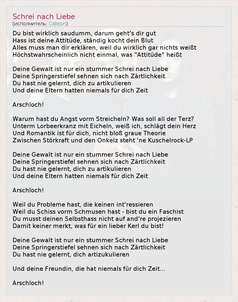 А как ты думаешь, о чем песня "Schrei nach Liebe" ?