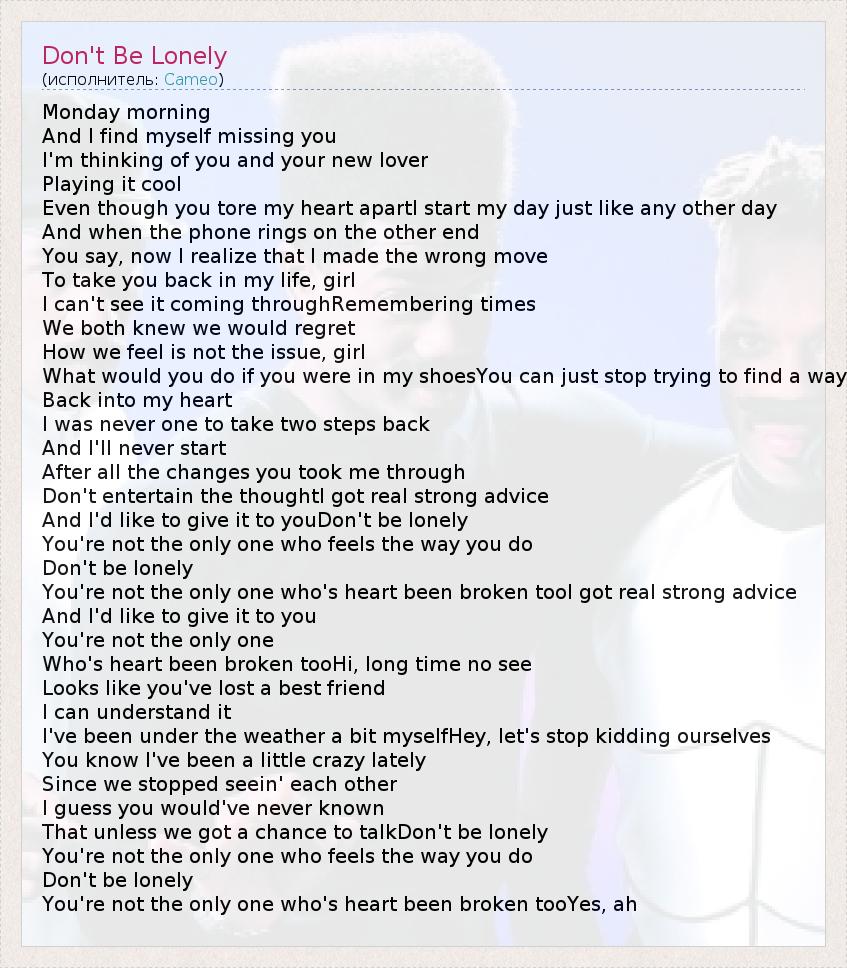 А как ты думаешь, о чем песня "Don't Be Lonely" ?
