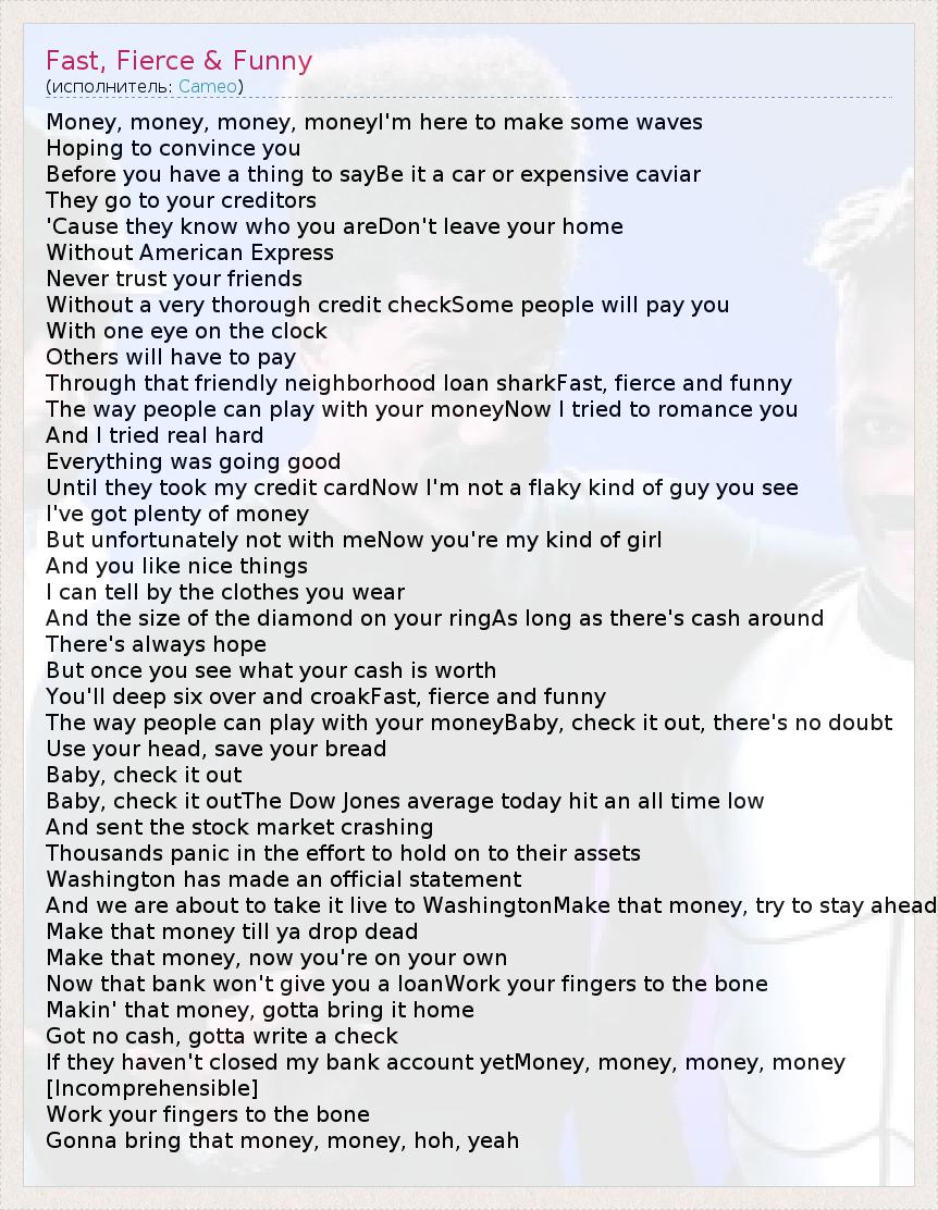 А как ты думаешь, о чем песня "Fast, Fierce & Funny" ?