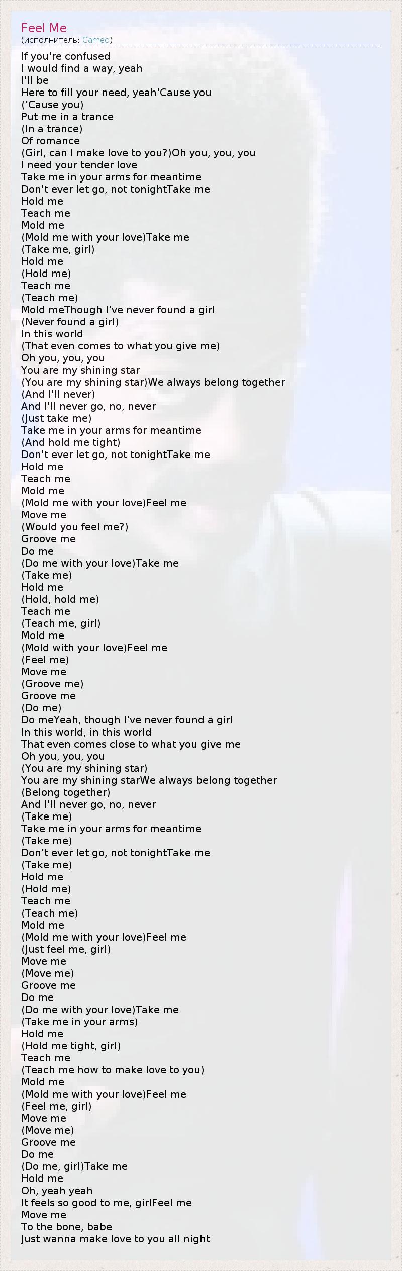 (Mold me with your love)Feel me