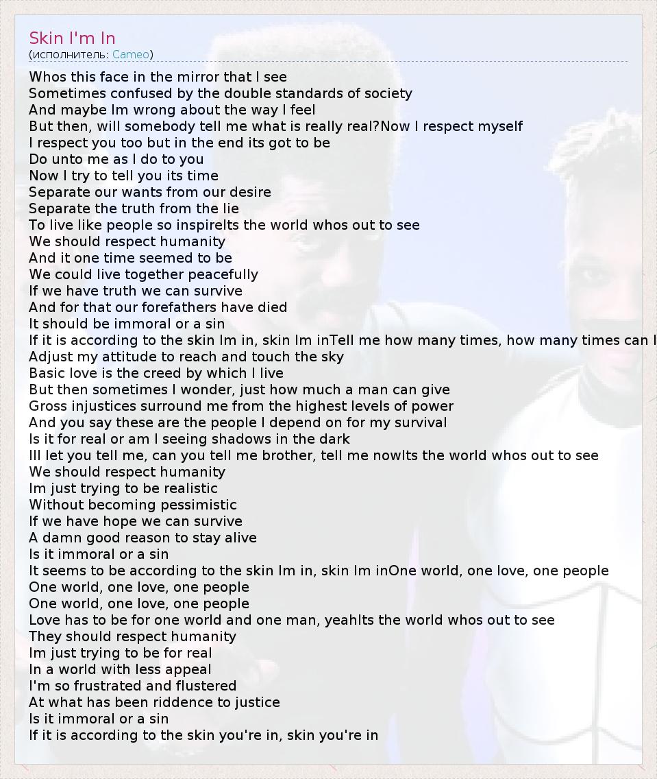 А как ты думаешь, о чем песня "Skin I'm In" ?