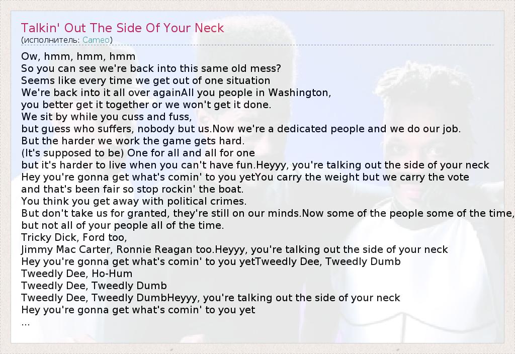 А как ты думаешь, о чем песня "Talkin' Out The Side Of Your Neck" ?