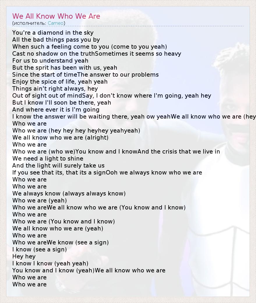 ГлавнаяИсполнителиCameoWe All Know Who We Are