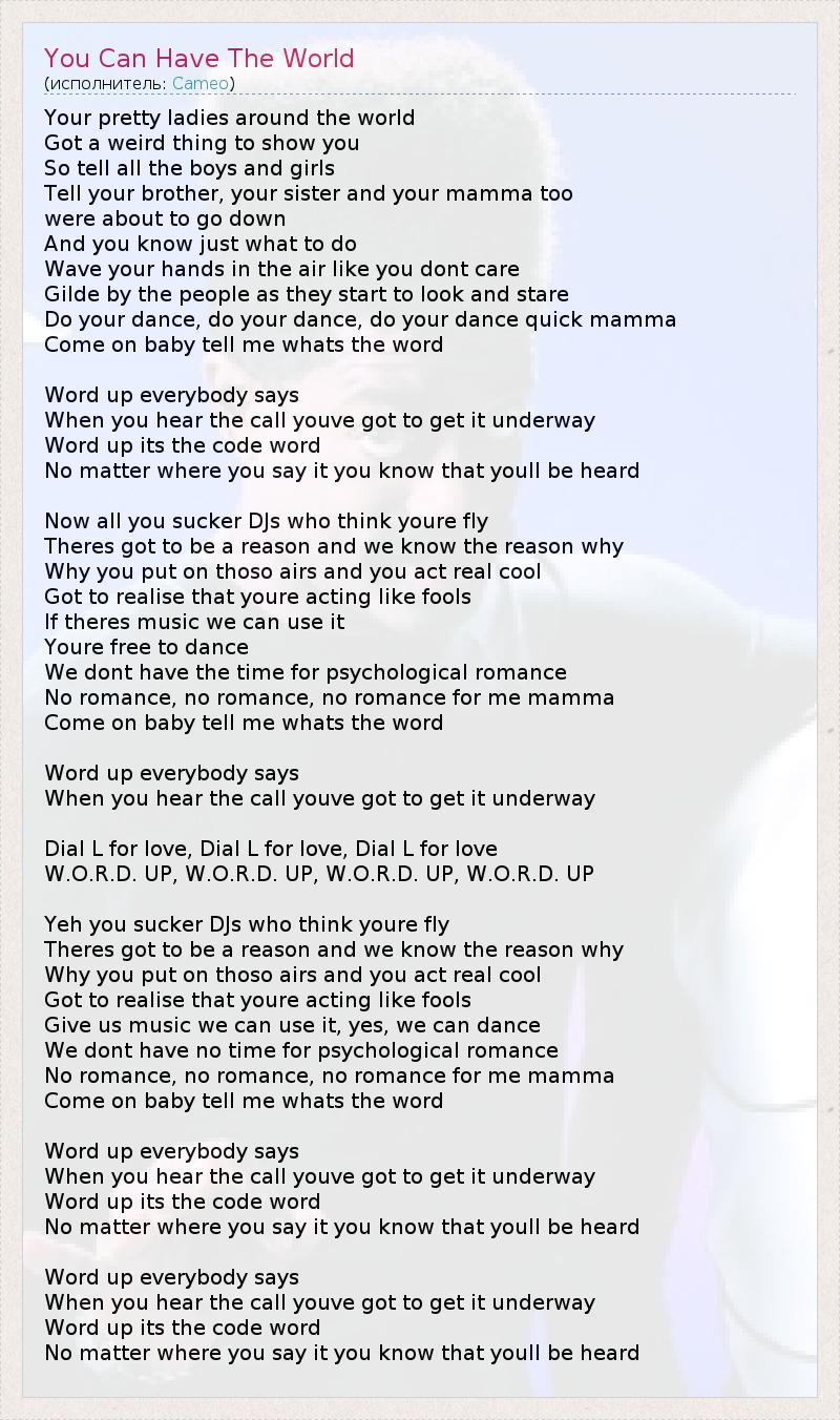 А как ты думаешь, о чем песня "You Can Have The World" ?