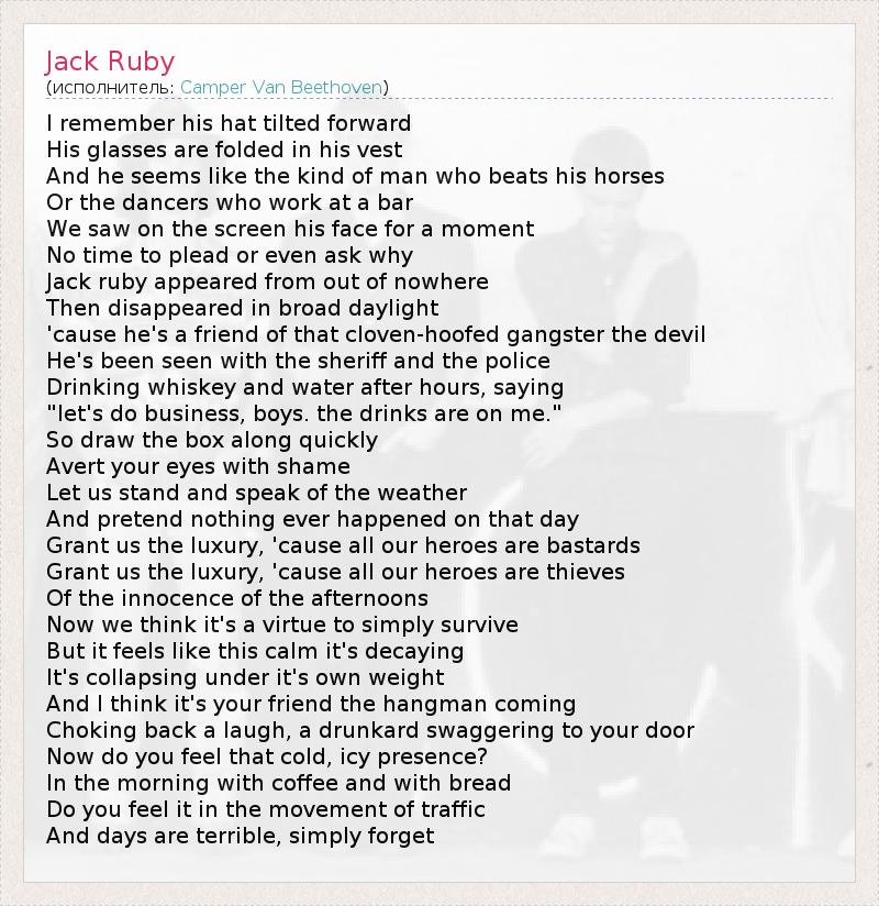 А как ты думаешь, о чем песня "Jack Ruby" ?