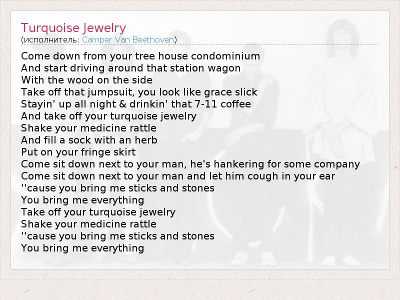 А как ты думаешь, о чем песня "Turquoise Jewelry" ?