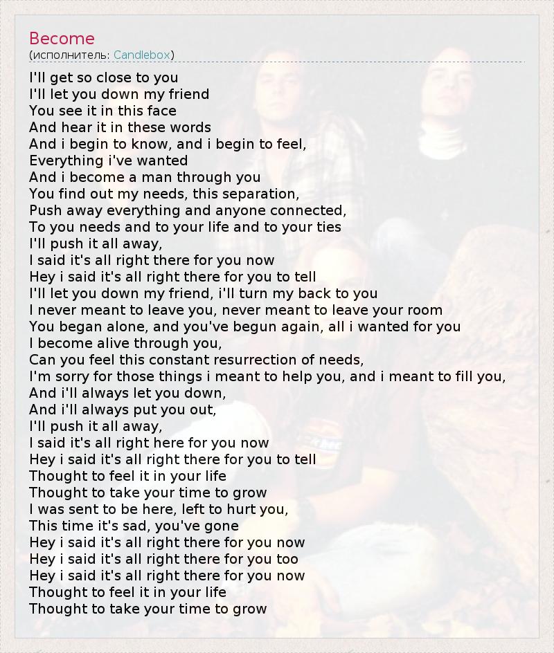 Это интересно:Candlebox - американская пост-гранж-группа, в основе творчества которой лежит направление нео-хард-рок. Образована в декабре 1991 в Сиэтле. Состав: Кевин Мартин (Kevin Martin; вокал, гитара), Питер Клетт (Peter Klett; гитара), Барди Мартин (Bardi Martin; бас-гитара), Скотт Меркадо (Scott Mercado; ударные). Основатели CANDLEBOX — Кевин Мартин и Скотт Меркадо. Первоначальное название группы UNCLE DUKE. Позже к ребятам присоединились... продолжение