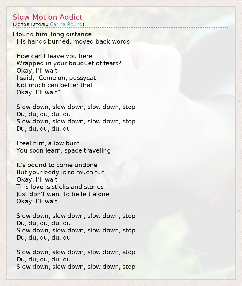 А как ты думаешь, о чем песня "Slow Motion Addict" ?