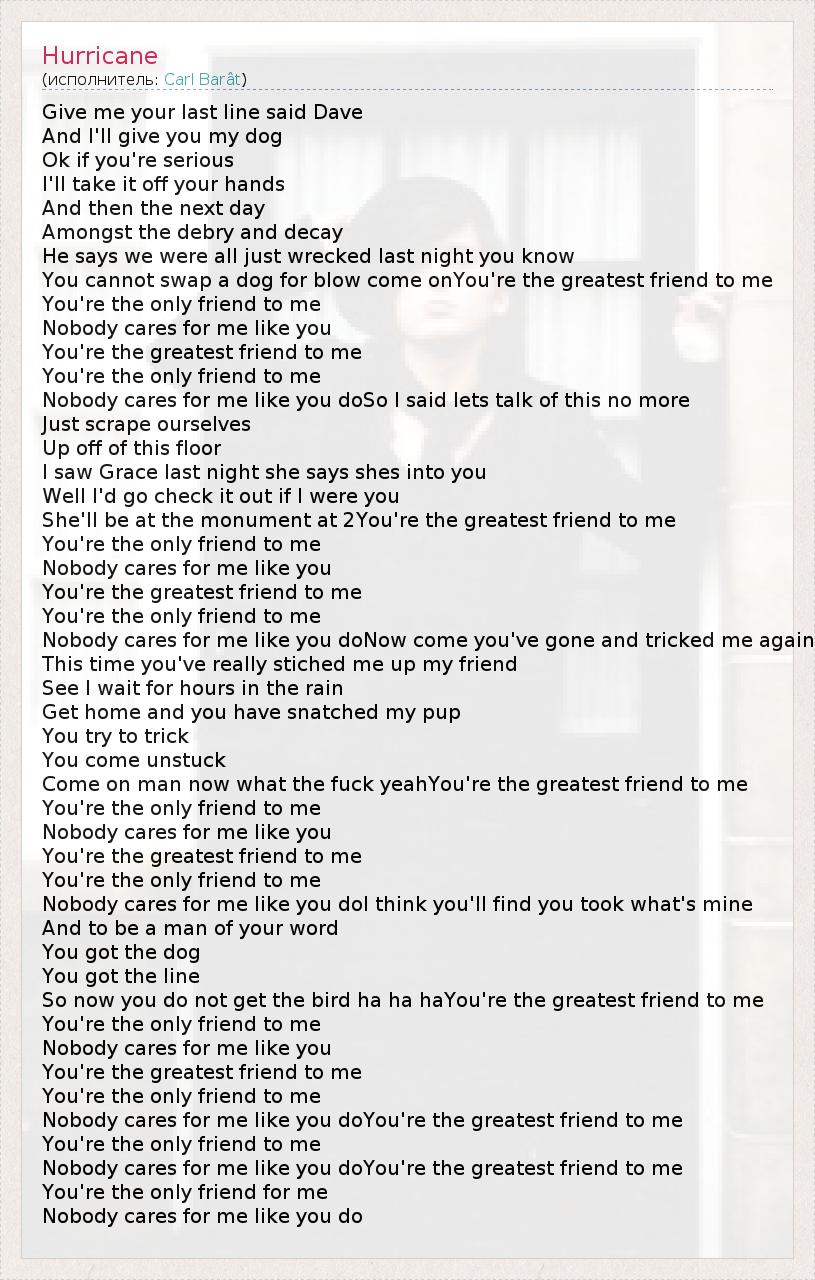 You cannot swap a dog for blow come onYou're the greatest friend to me