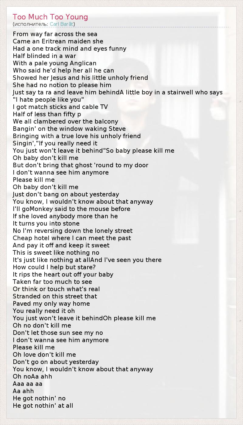 А как ты думаешь, о чем песня "Too Much Too Young" ?
