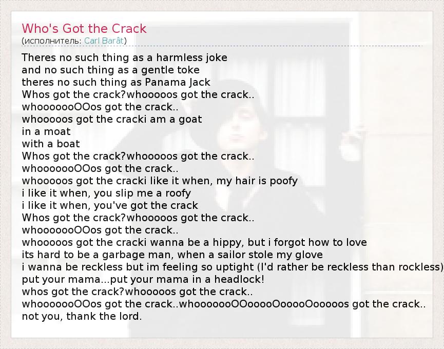 whos got the crack?whooooos got the crack..