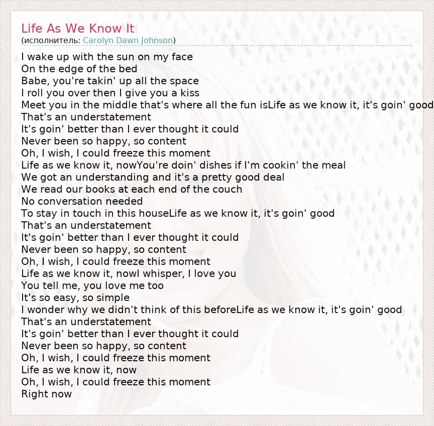 А как ты думаешь, о чем песня "Life As We Know It" ?