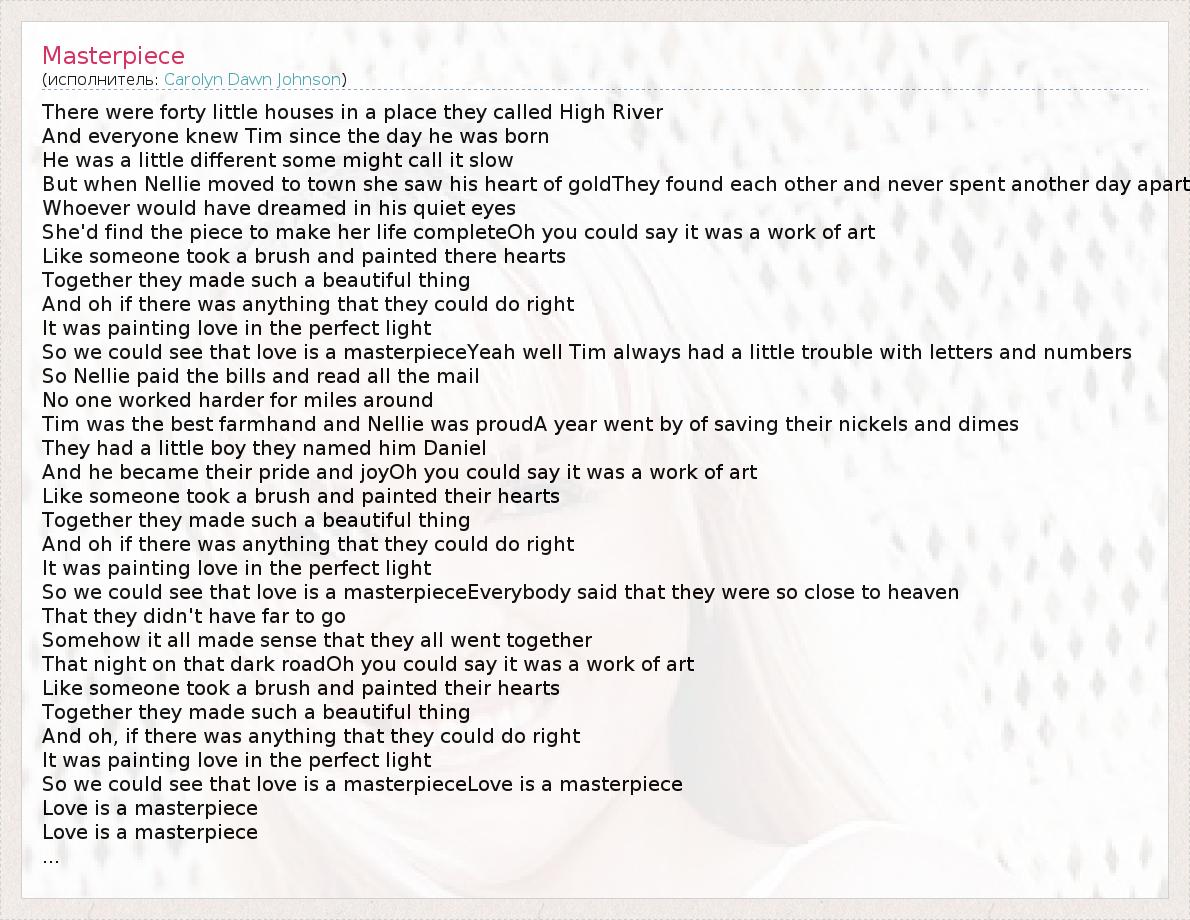 А как ты думаешь, о чем песня "Masterpiece" ?