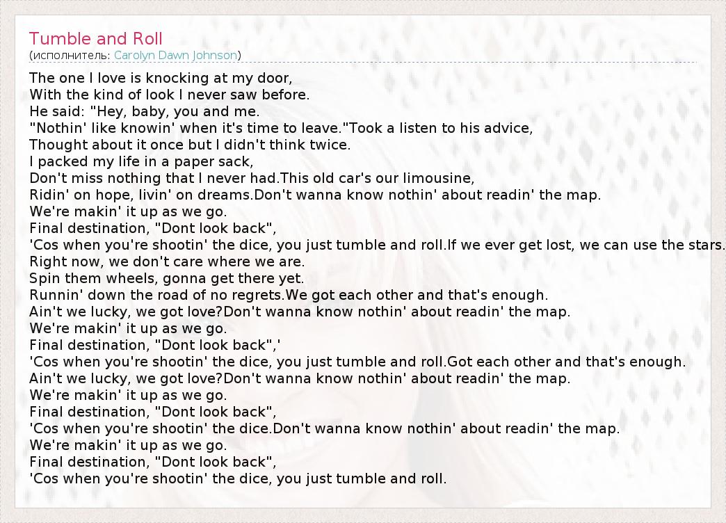 А как ты думаешь, о чем песня "Tumble and Roll" ?
