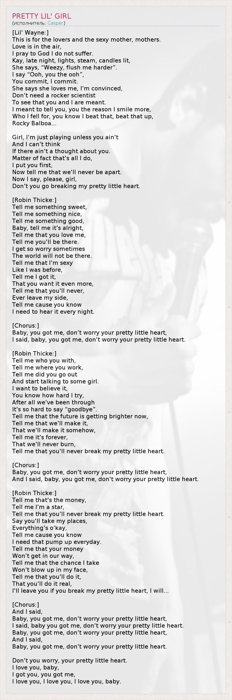А как ты думаешь, о чем песня "PRETTY LIL' GIRL" ?