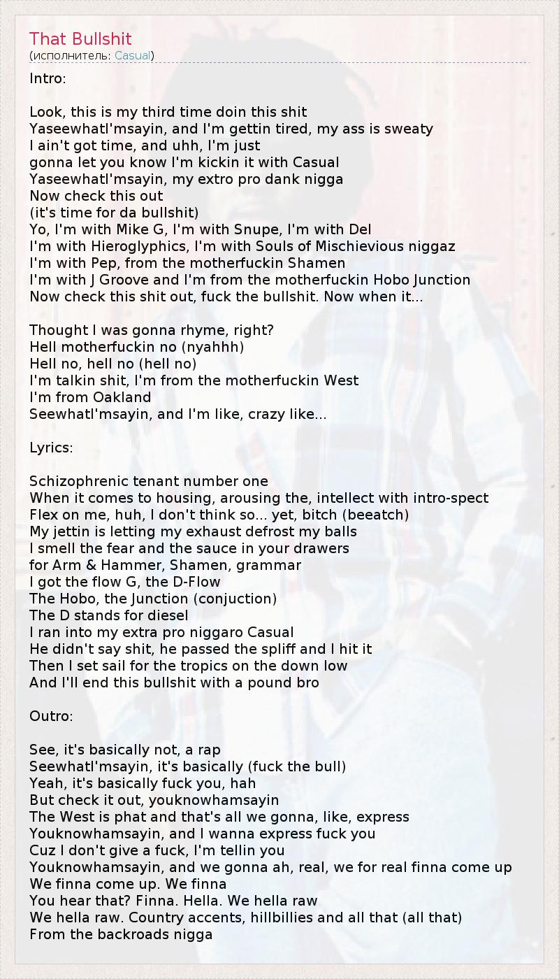 А как ты думаешь, о чем песня "That Bullshit" ?