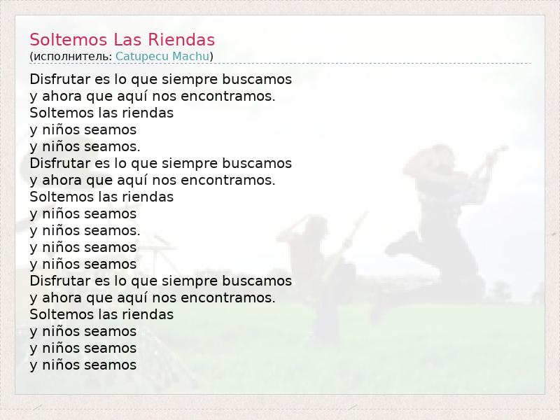 А как ты думаешь, о чем песня "Soltemos Las Riendas" ?