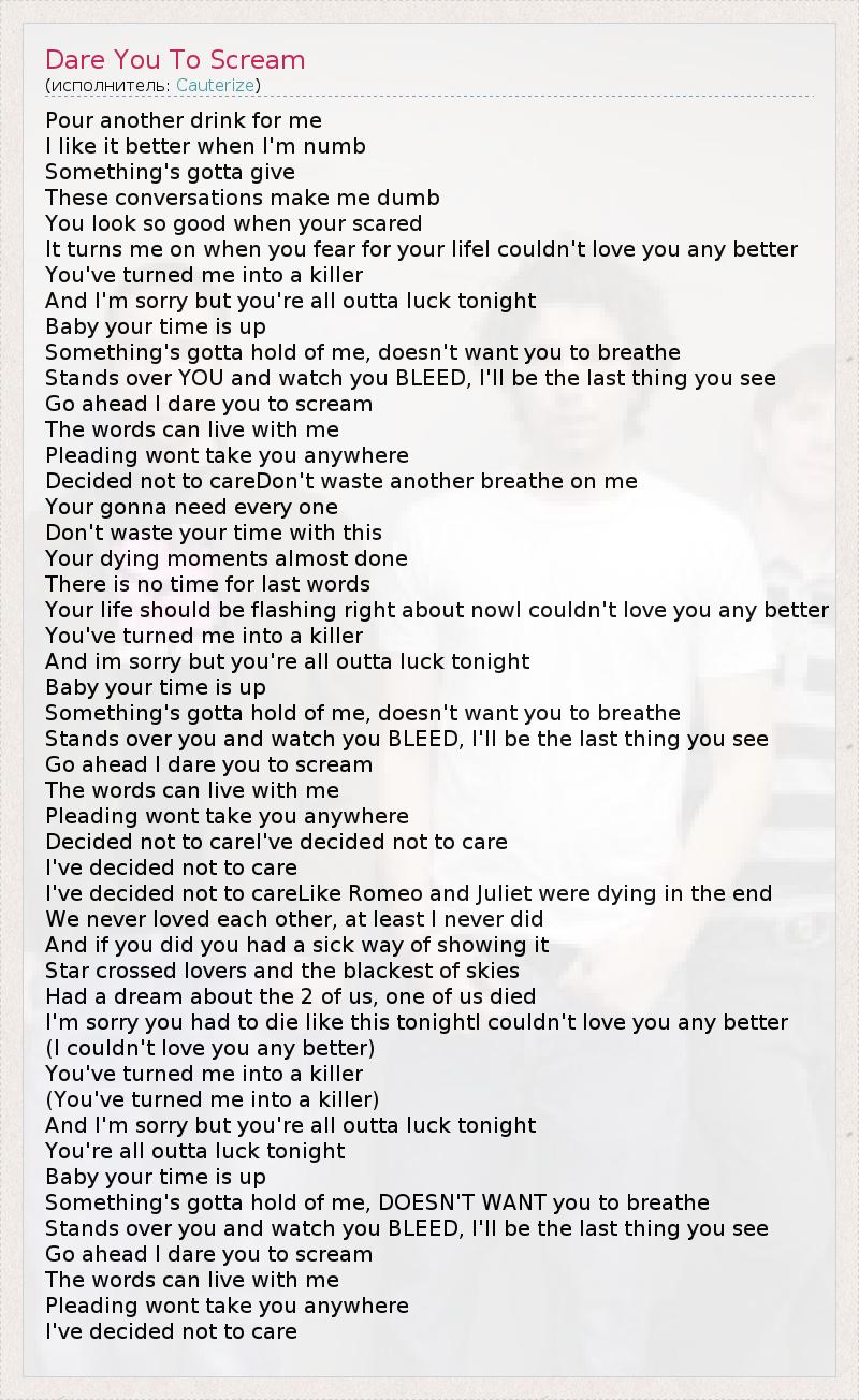 А как ты думаешь, о чем песня "Dare You To Scream" ?